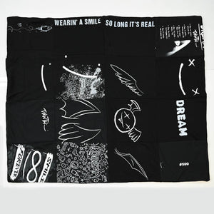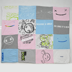 This 50 inch x 60 inch quilt combines older hoodie or sweatshirt prints into a unique, serialized blanket thatyou’ll never want to take off!